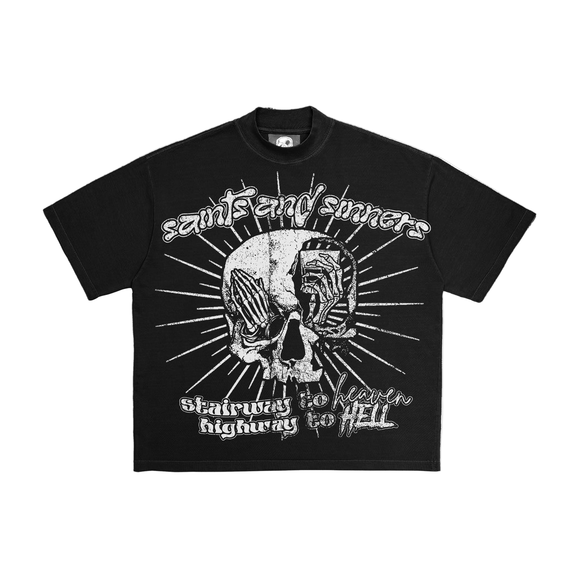 "Unleash your inner rebel with our Saints n Sinners graphic tee. This edgy black tee features bold front and back text, while its true-to-size fit adds a rockstar double life effect. Embrace your individuality and stand out from the rest in this Loner's Locker must-have. Dare to be different. Dare to be you!"
